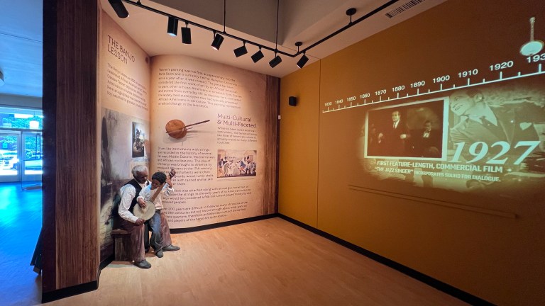 An exhibit which introduces visitors to the evolution of the banjo, beginning with its humble roots from enslaved Africans in the mid-1600s. Visitors will follow a timeline of events in history and pop culture and see the banjo's journey along the way. A special presentation video hosted by Grammy-winning artist, Dom Flemons, gives patrons an in-depth history of the banjo from early American use to current performers.