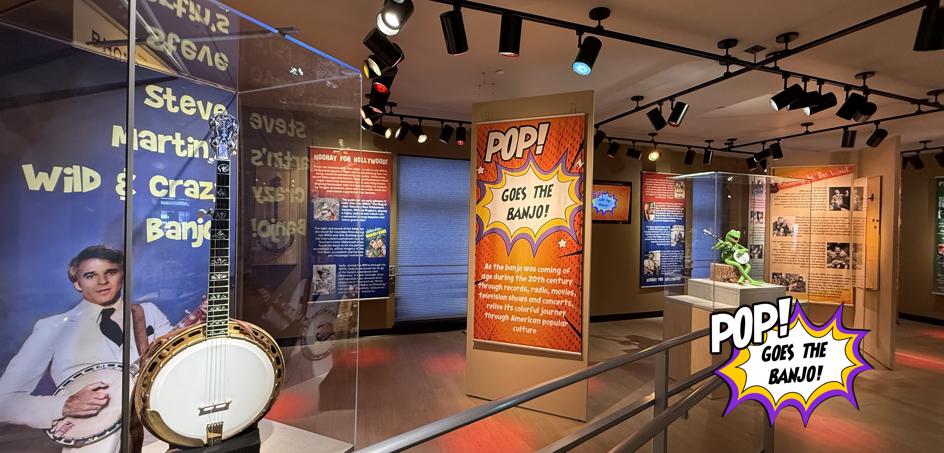 POP! Goes the Banjo! — an immersive celebration of the banjo’s unforgettable moments in entertainment history. Bringing together some of the most beloved banjos ever to appear on stage and screen — many of them on public display for the first time — this exhibit features everything from Kermit to Steve Martin!