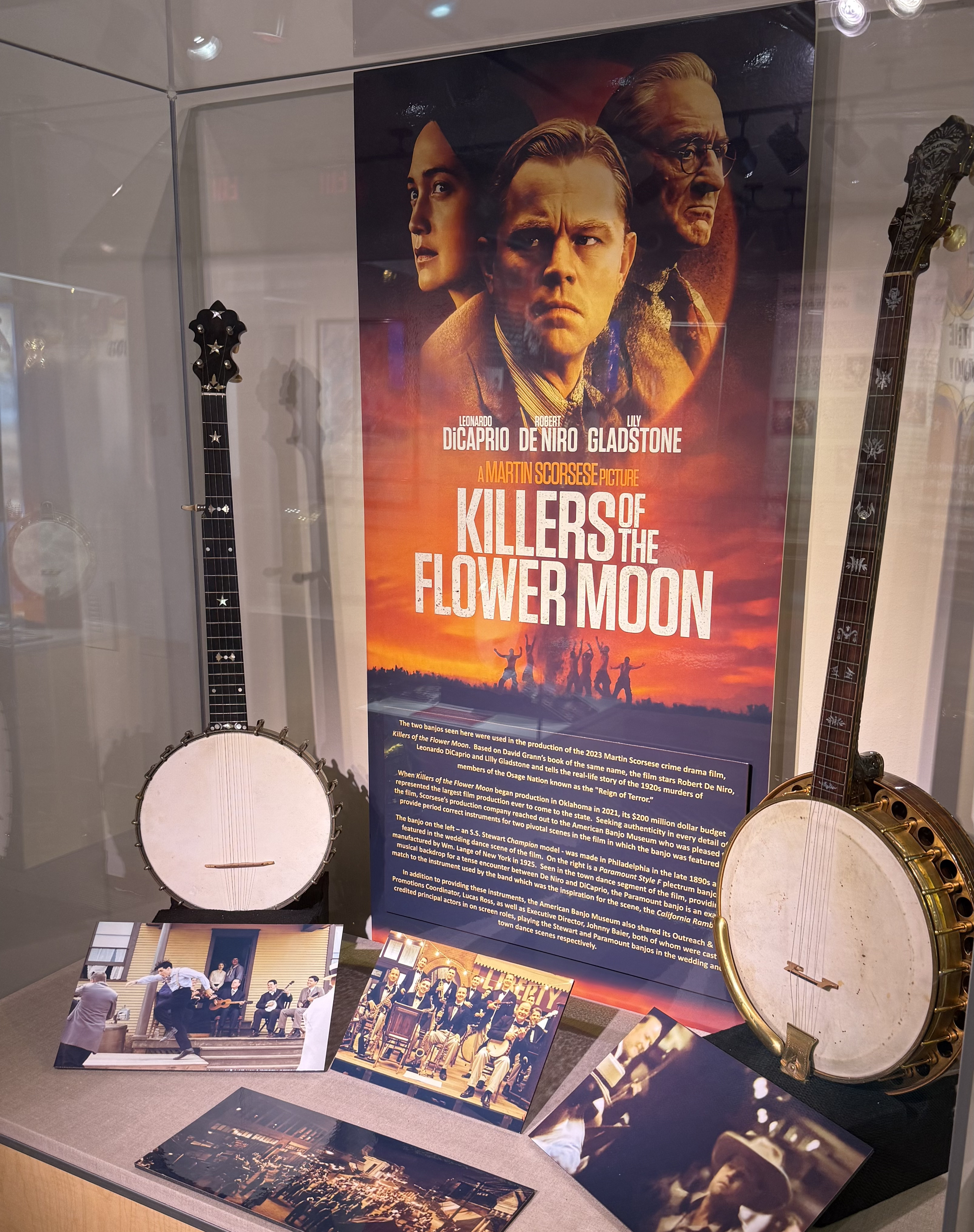 For Disney fans, the exhibit includes a special treat — the banjo from the 2002 Disney film The Country Bears, bringing another whimsical moment in banjo cinema history to Oklahoma City. Country music fans will enjoy seeing banjos owned by Roy Clark and Grandpa Jones while two banjos used in bringing Oklahoma history to life in Martin Scorsese's 2023 epic, Killers of the Flower Moon, are also on display.