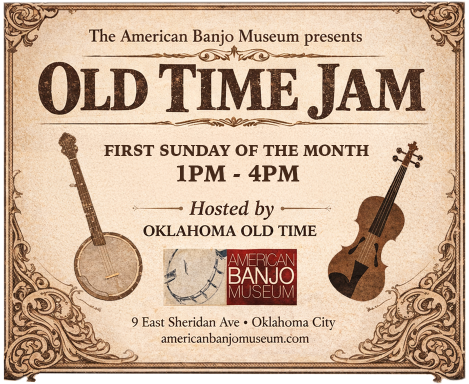 Join us for our Old Time Jam Session hosted by OKLAHOMA OLD TIME at the American Banjo Museum. Free admission when you bring an instrument and participate in this old time music style. Meets on first Sunday of the month excluding any holidays.